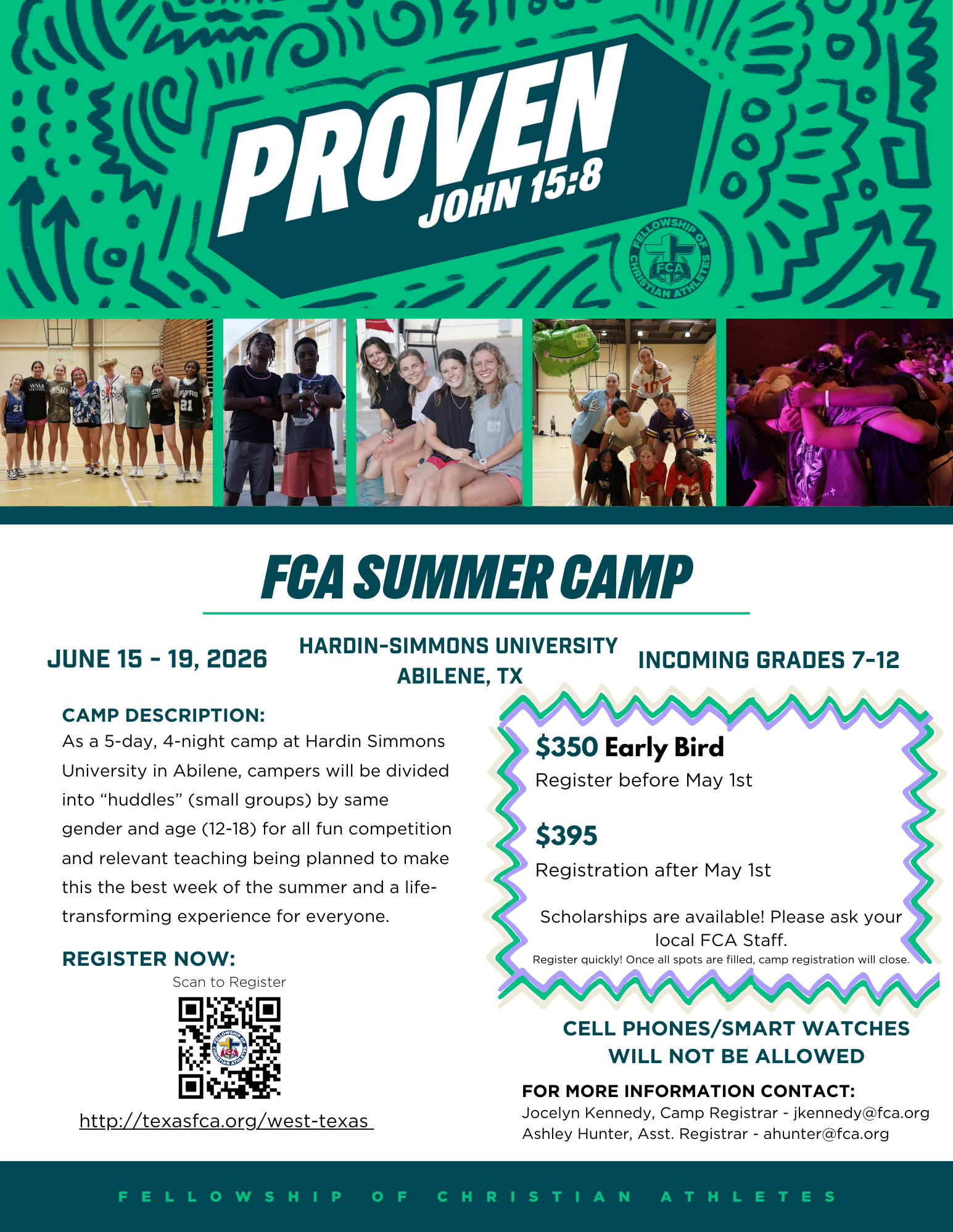 For more details about camps and scholarships available near you, contact your local FCA staff.